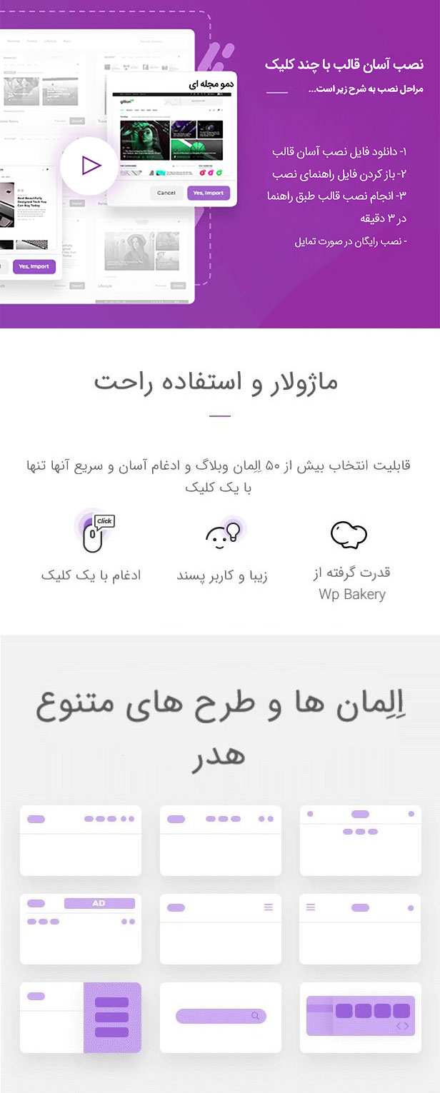 بهره مندی از چندین فونت زیبای فارسی و قابلیت تنظیم در بخش تنظیمات قالب