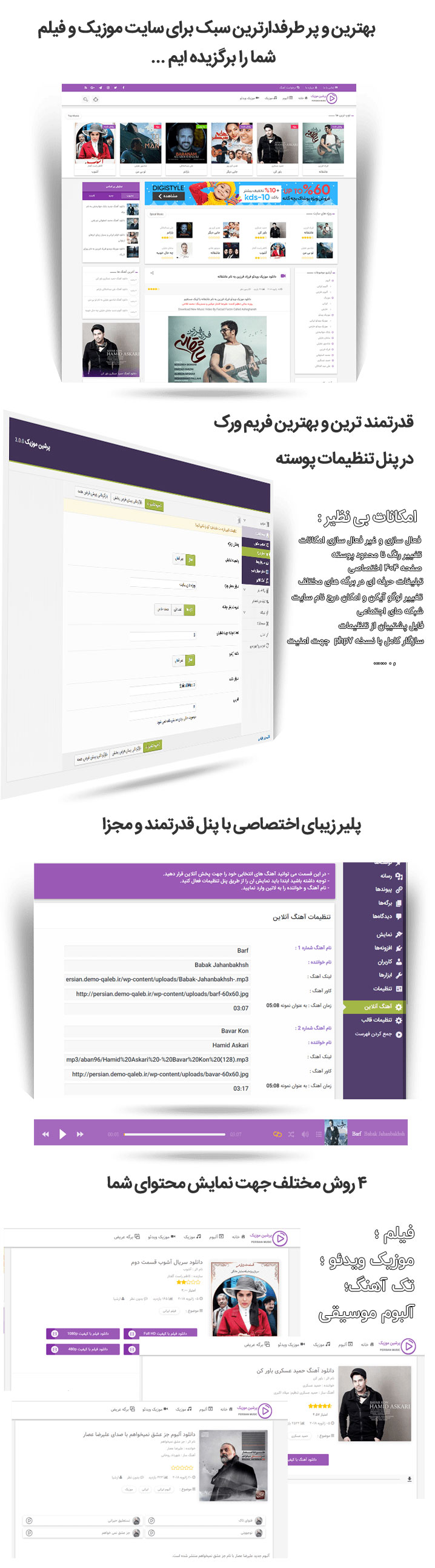 و در نهایت؛ یک تجربه بصری شیک، کاربرپسند و دقیقاً مناسب سایتهای موزیک و رسانهای