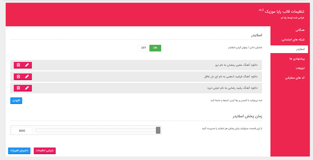 اسلایدر اختصاصی با قابلیت تعریف بینهایت اسلاید : تنظیم سرعت اسلایدر و نمایش پویا در صفحه اصلی.