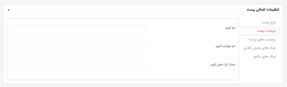 زمینههای دلخواه پیشرفته : اضافه کردن لینکها، کیفیتها، جزئیات آهنگ و… بدون محدودیت.