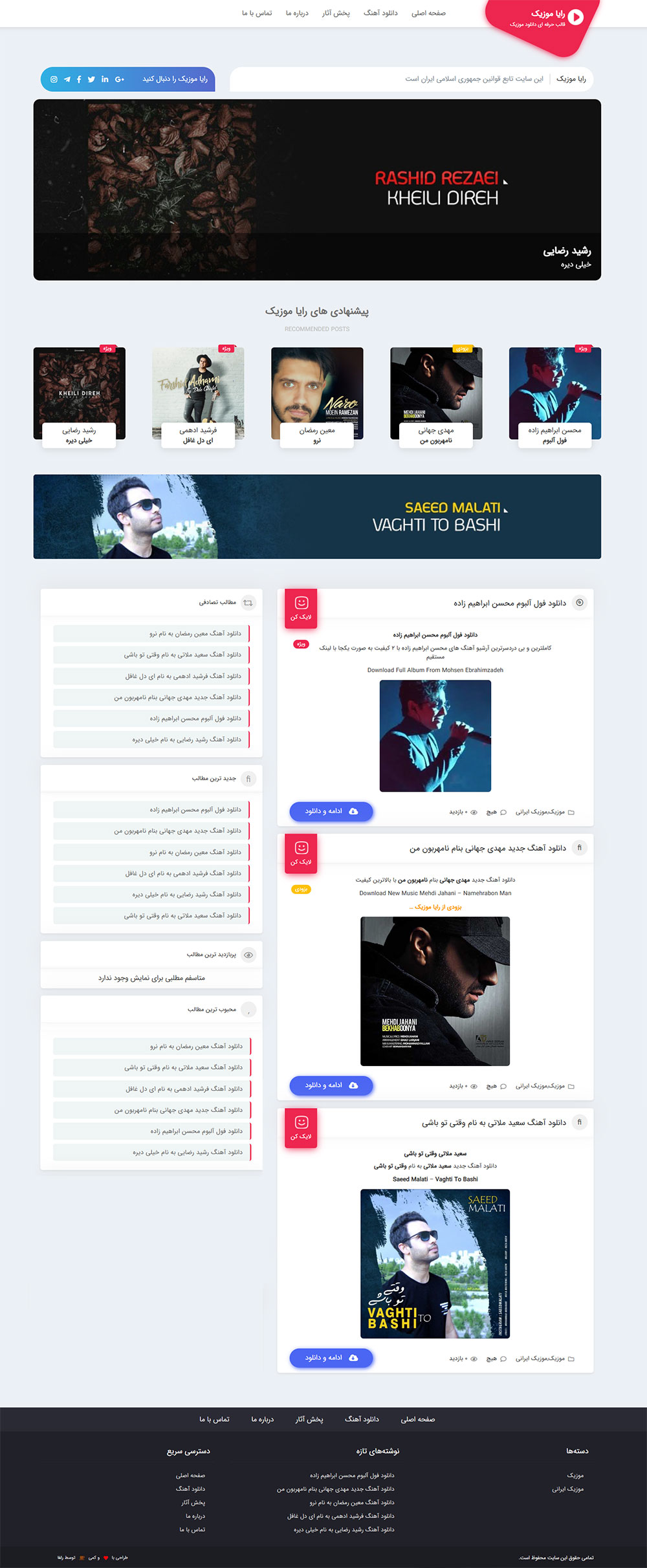 قالب وردپرس رایا موزیک | انتخابی حرفهای برای سایتهای موزیک