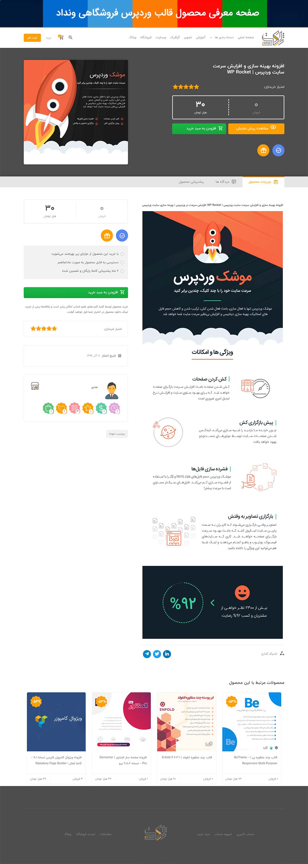 طراحی حرفهای صفحه محصول + امکانات جذاب نمایشی: از نمایش گرید محصولات به سبک جدید گرفته تا قابلیت نمایش تخفیف، ویژگی محصول، محصولات مرتبط، اسلایدر عکس بدون JS و باکس دستهبندیها… همه چیز برای فروش بیشتر آماده است.